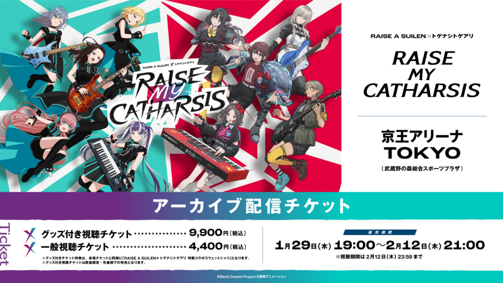12月7日(金)に京王アリーナ TOKYOにて開催した、RAISE A SUILEN ×トゲナシトゲアリ「RAISE MY CATHARSIS」アーカイブ配信の詳細が決定。